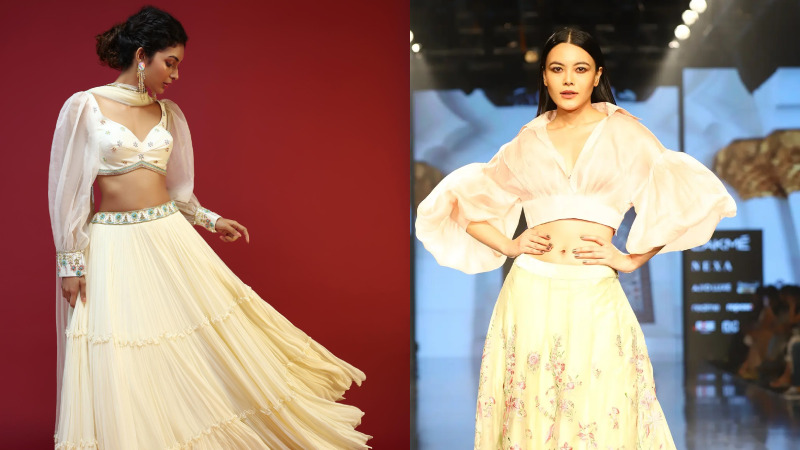 Nowadays, balloon sleeves are really fashionable, and this wedding season, v-neck blouse designs with balloon sleeves are undoubtedly more in style. These give your attire a lot of intrigues and are a terrific way to display your forearms. These are ideal for dresses that are more informal. You can choose a more showy sleeve, particularly if you’re striving for a more laid-back appearance. These are ideal for adding interest to your wedding-season attire. These look nice with more laid-back attire.