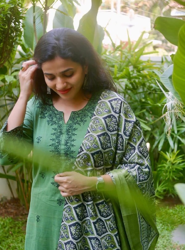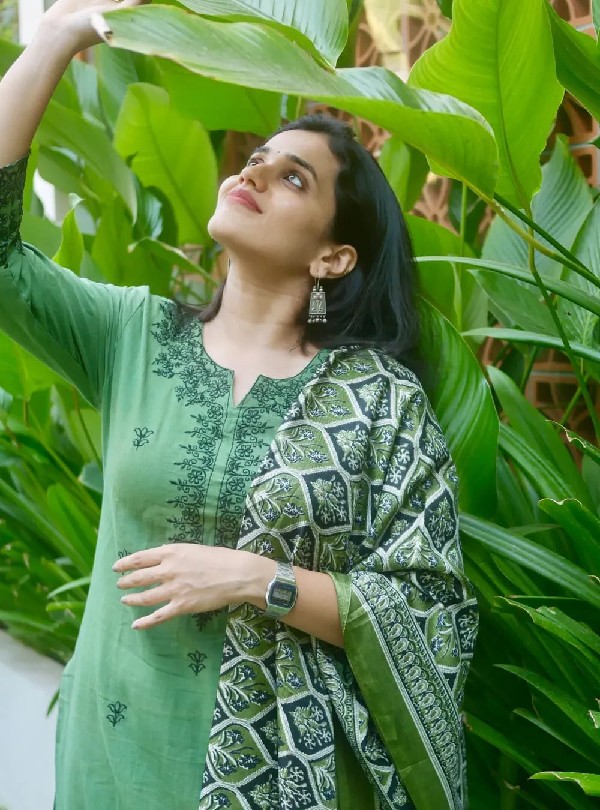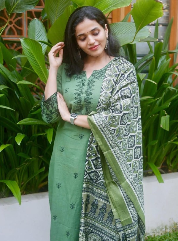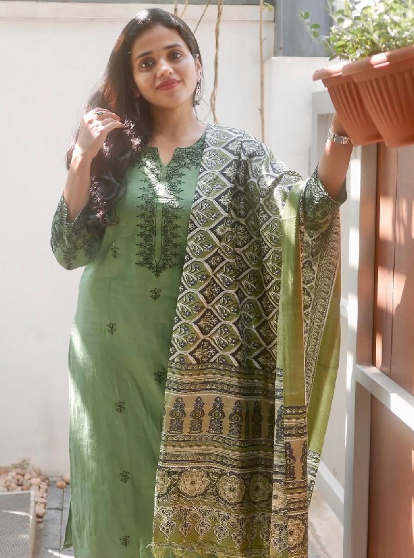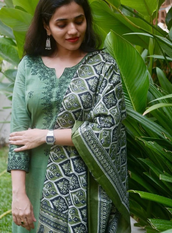 New Ajrakh Dupatta Cotton Kurta Set