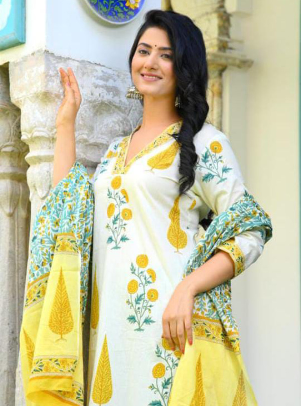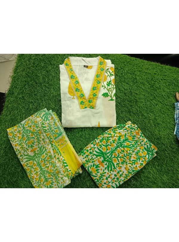 Beautiful Flower Print Kurti Pant With Cotton Malmal Dupatta