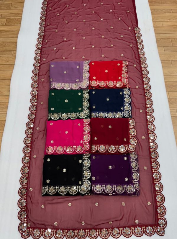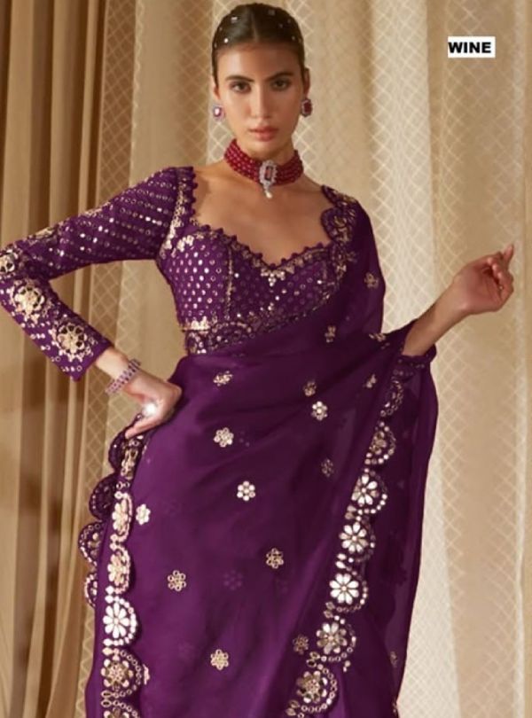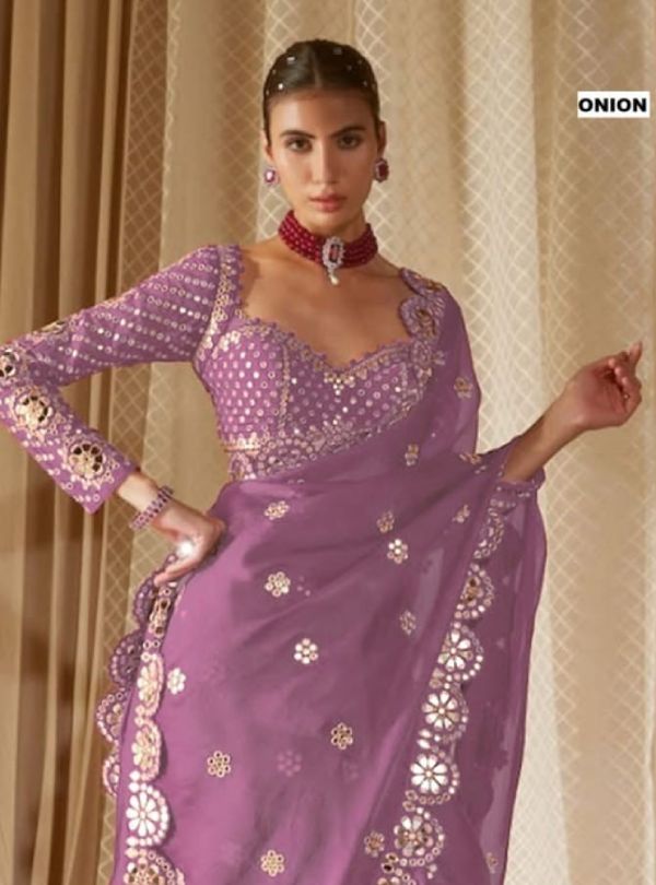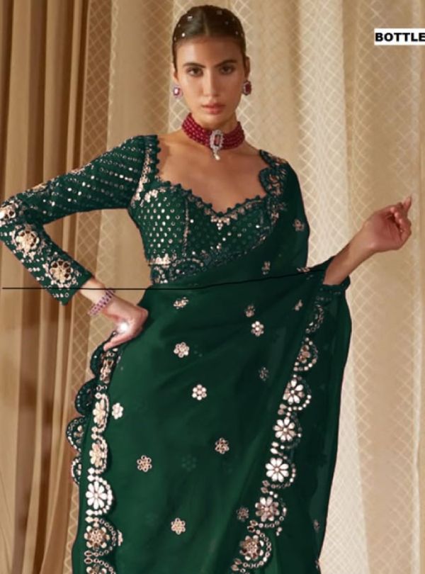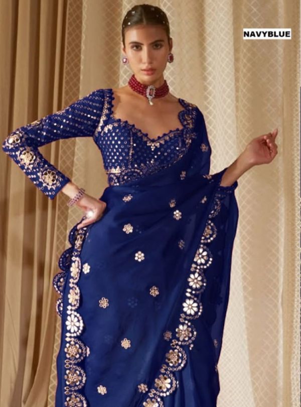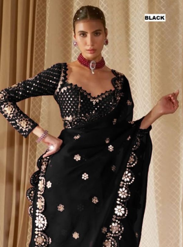 Step into elegance with our Bollywood Blockbuster Original Mirror Saree, crafted from heavy-quality faux georgette and adorned with intricate mirror and sequin work. This festive saree comes with a beautifully stitched blouse, making it perfect for parties, weddings, or special occasions. Combining traditional handwork with modern glamour, it’s a show-stopping choice for women who love luxury and style.