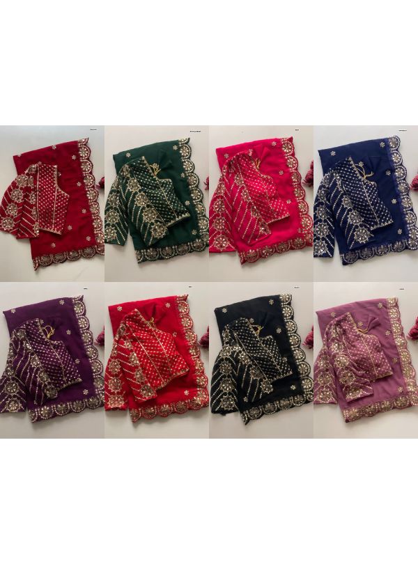 - Blouse: Georgette with heavy embroidery, multi-sequin work on front & back