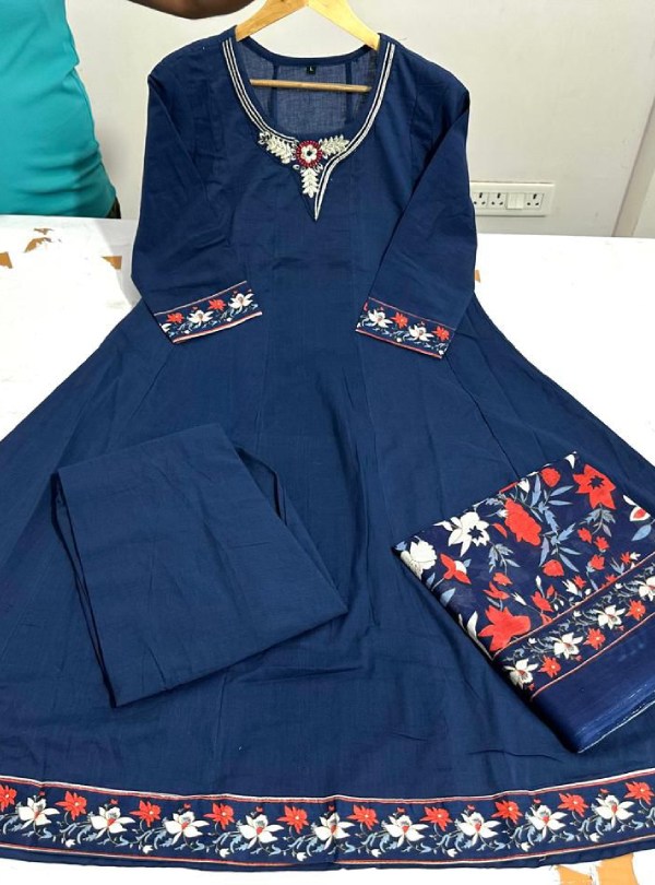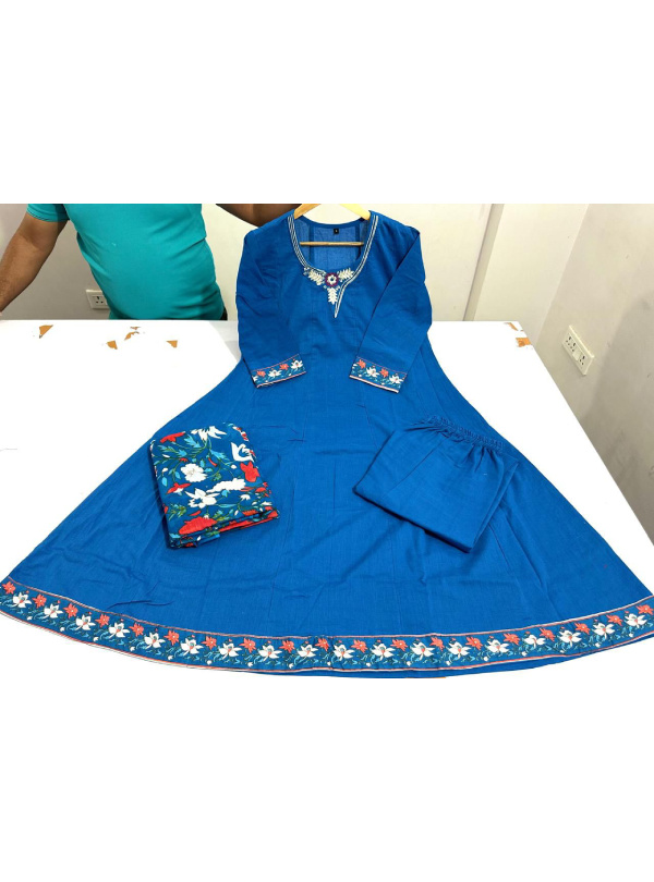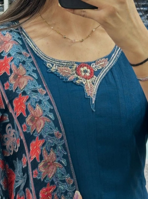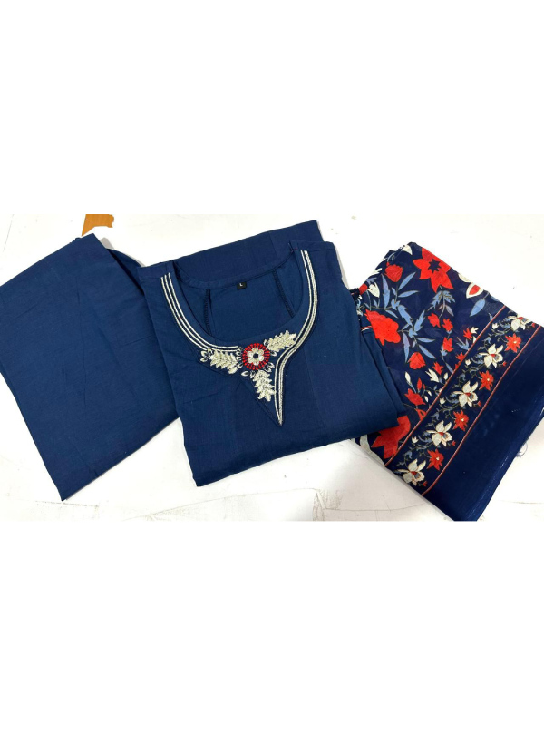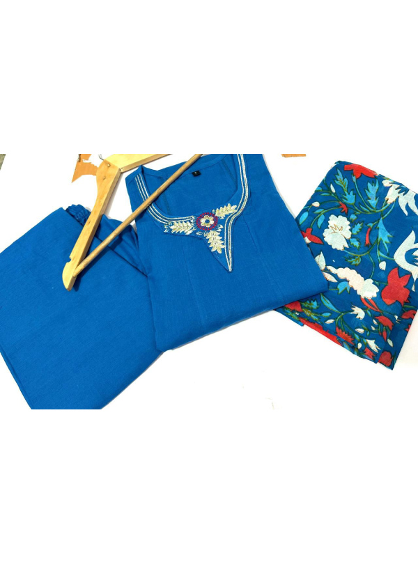 ✔ Set Includes: Embroidered & Printed Cotton Kurta + Matching Cotton Pant + Soft Malmal Dupatta