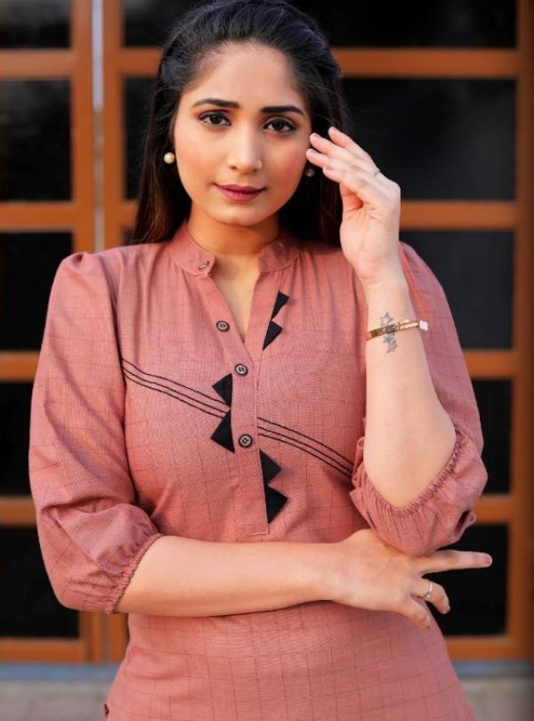 Dusty Peach Casual Wear Cotton Kurti
