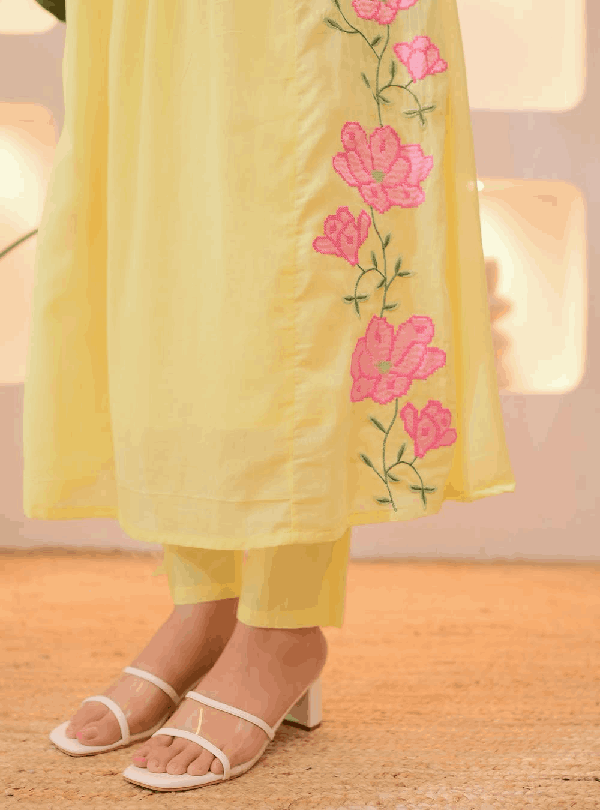 Bright Yellow Handloom Cotton Suit Set
