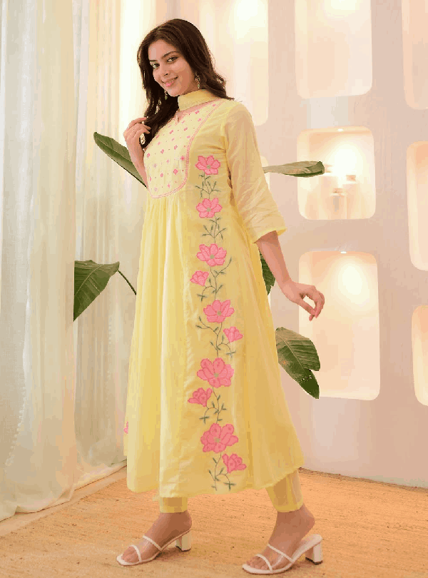 Elegant Embroidered Yoke Suit Set