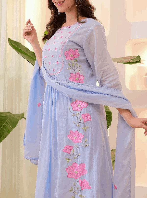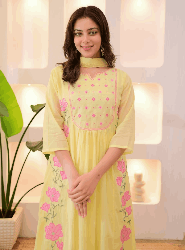 ✔️ Intricate hand-embroidered yoke for a stylish look