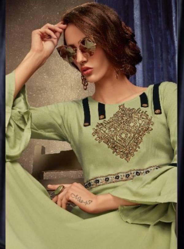 Light Green Rayon Designer Party Wear Kurti