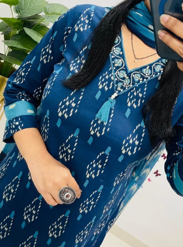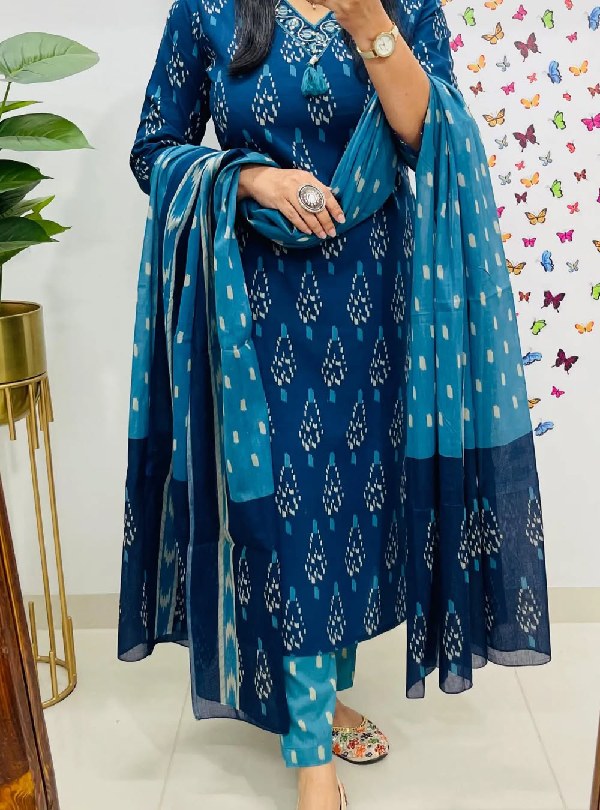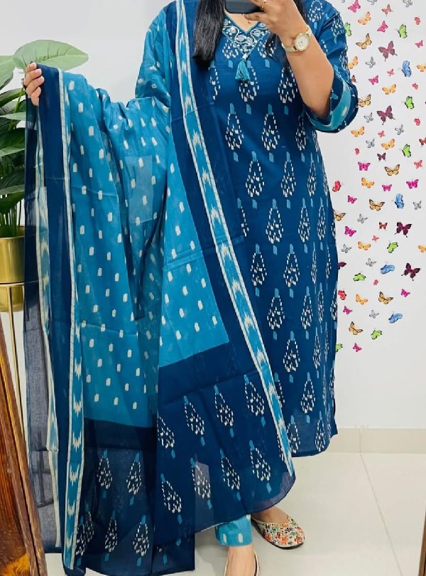 Elevate your ethnic wardrobe with our Luxury Discharge Print Suit Set, crafted from premium pure cotton. Featuring rich discharge prints and intricate handwork, this designer suit set combines elegance with comfort.