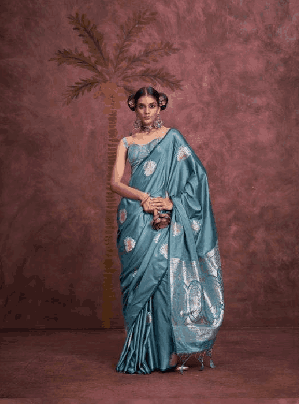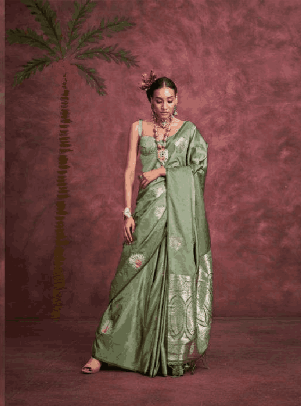 Work: Banarasi Zari with Heavy Pallu & Blouse